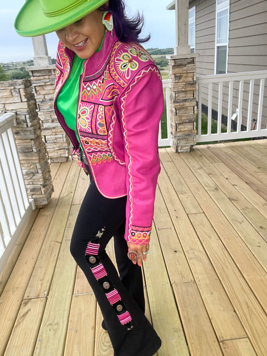 ButteryLeather Cropped Jacket w/beaded flower details