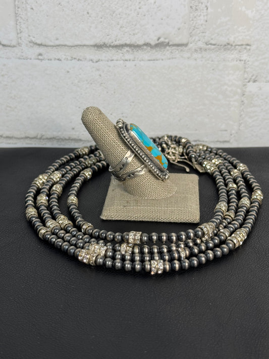 3 Tier Arrow Ring w/Nickels & Turquoise Stone