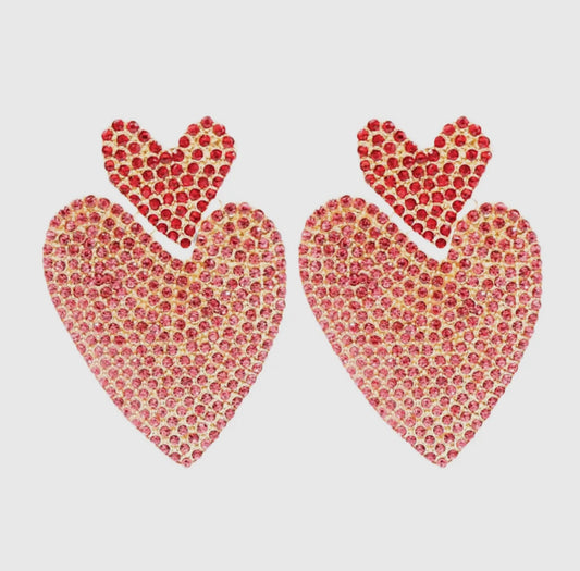Red & Pink Double Drop Heart Crystal Earrings