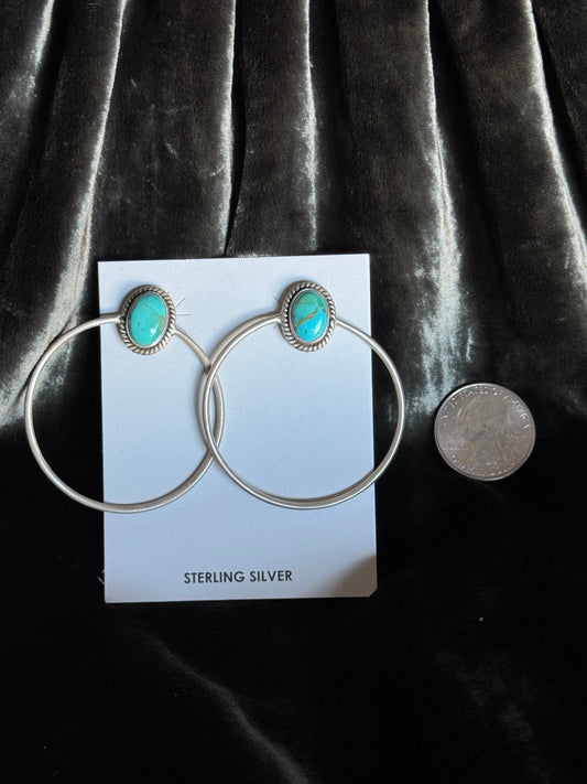Sterling Silver Turquoise Hoop Earrings