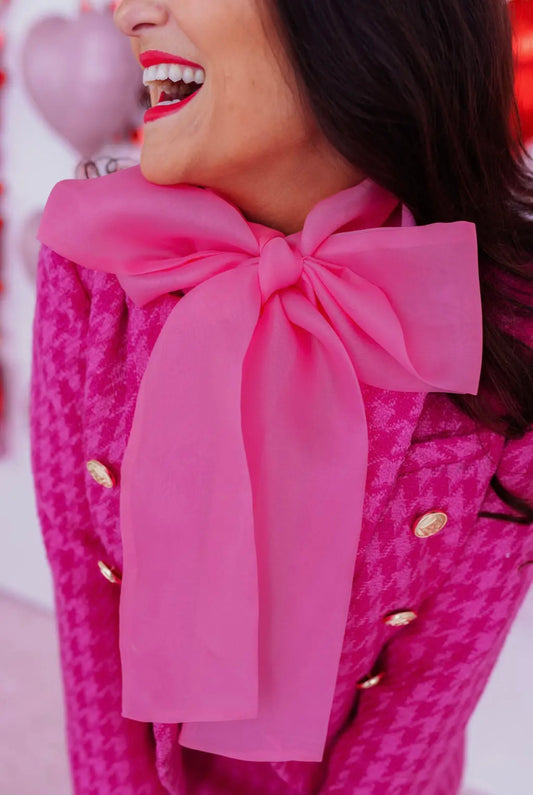 Pink Button Down Blouse with Bow