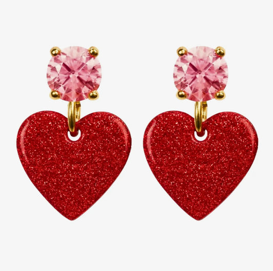 Red Heart Studs with Pearls