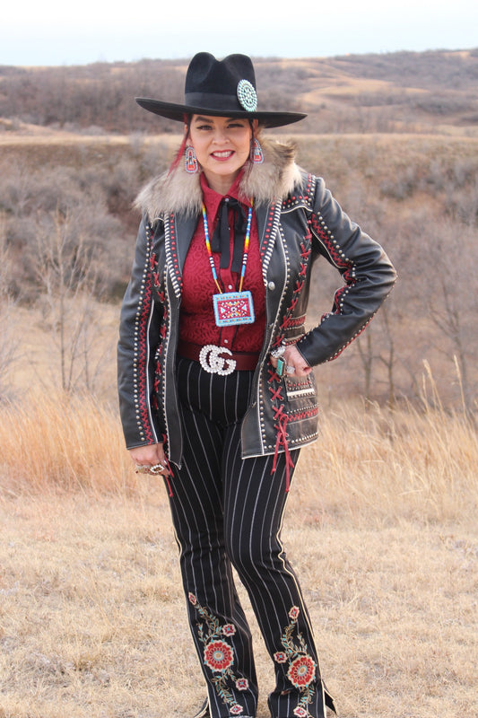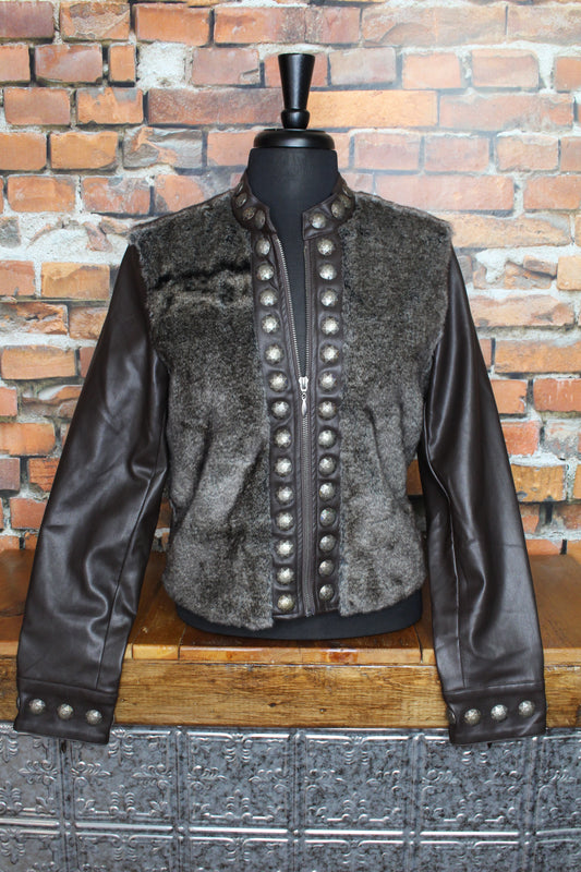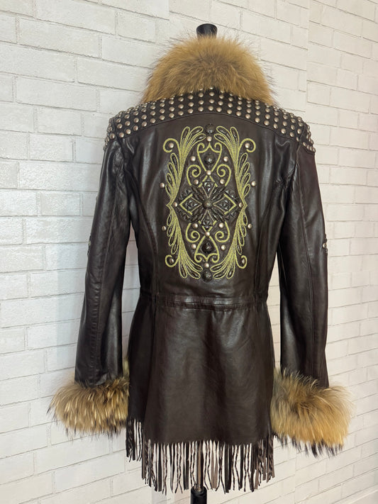 Merlot Leather Jacket with Fur Collar & Cuffs