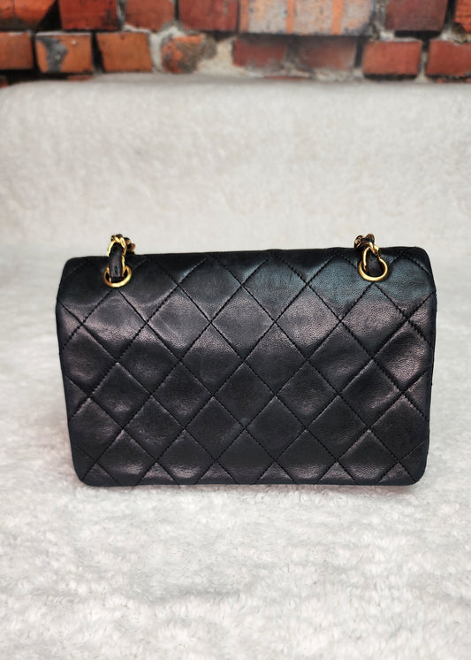 Pre-Loved Chanel Lambskin Quilted Small Single Flap Bag Black