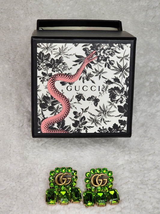 Pre-Loved Gucci Green Crystal Double G Gold-tone Clip On Earrings