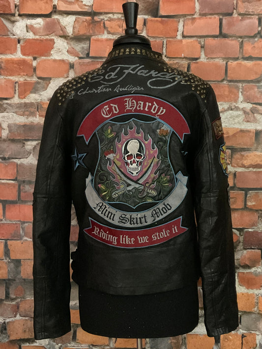 Ed Hardy Mini Skirt Mob Leather Moto Jacket