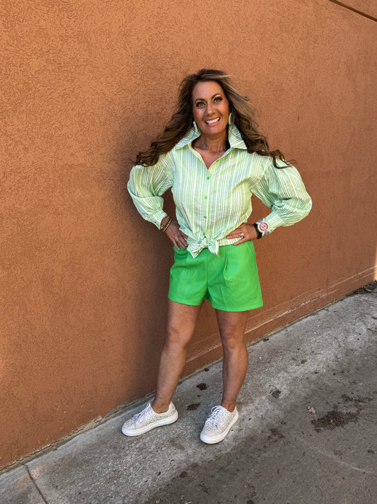 Faux Leather Pleated Shorts