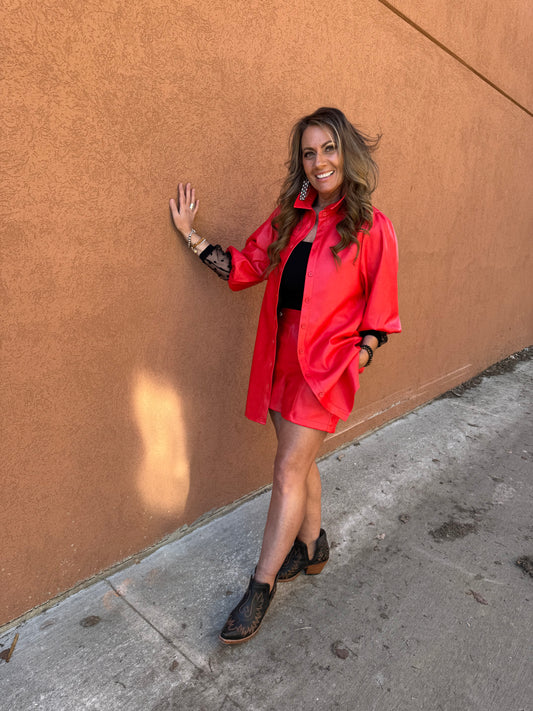 Faux Leather High-Waisted Button Shorts