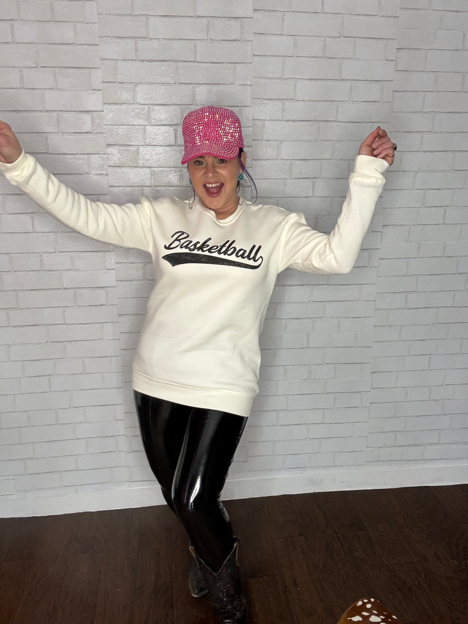 BASKETBALL Graphic Sweatshirt Unisex Fleece Pullover Relaxed Fit. -Spun from plush sponge fleece fabric -Remarkably soft unisex pullover -Crewneck sweatshirt lends itself to daily wear and year-round layering. -Featuring ribbed cuffs and waistband, a crew neck, and fashion-forward fleece fabrication.