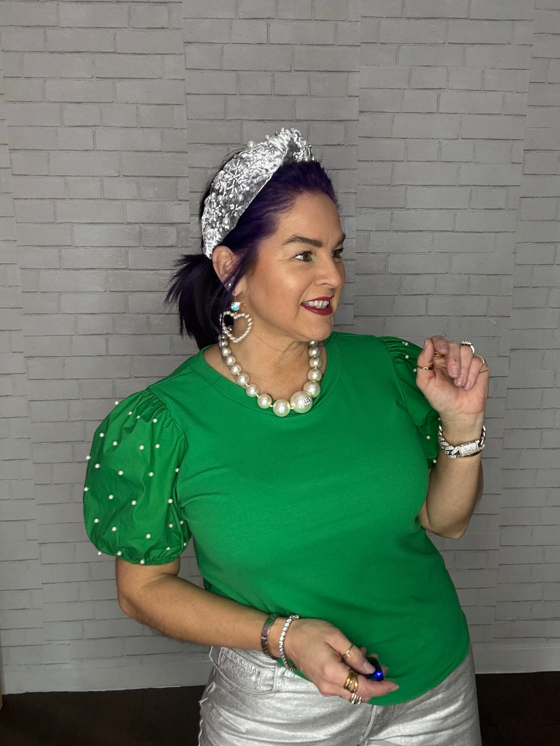 This heart is framed by cream pearl beads. It hangs from a 10mm AB Austrian crystal in a setting custom made for Pink Panache in the USA. Approximately 2.5 inches in length.