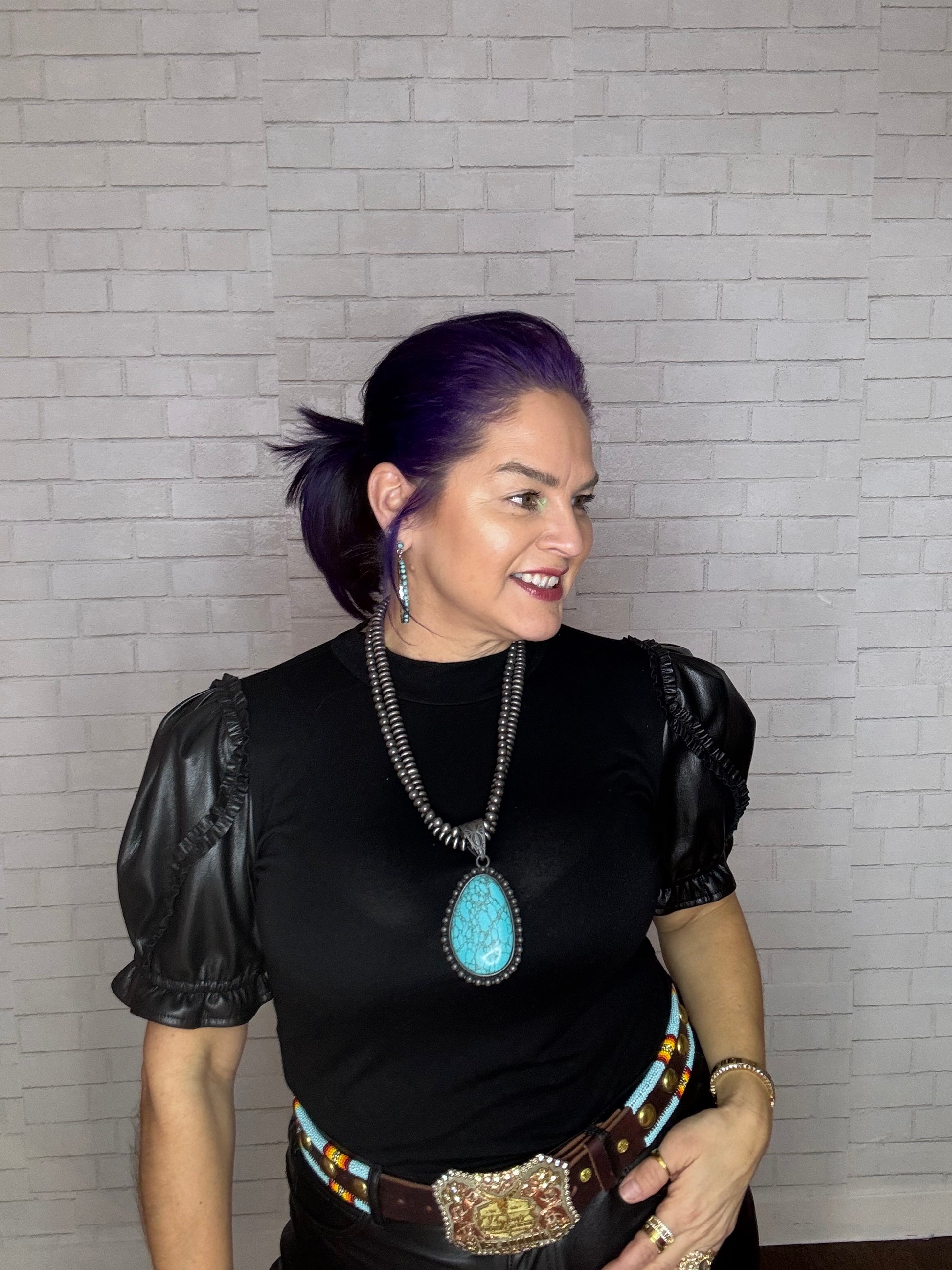 24” inches Double Pearl Beads Strings with Blue Stone Teardrop Pendant Necklace