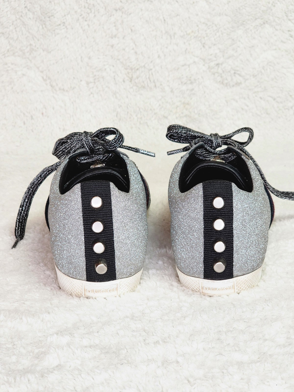 Loved these Gucci sparkly tennis shoes but just didn’t wear them enough! Dust bags included and box may or may not be included (I have to find it or I may have tossed it out). The tennis shoes retailed for $695.00. My price also includes shipping!