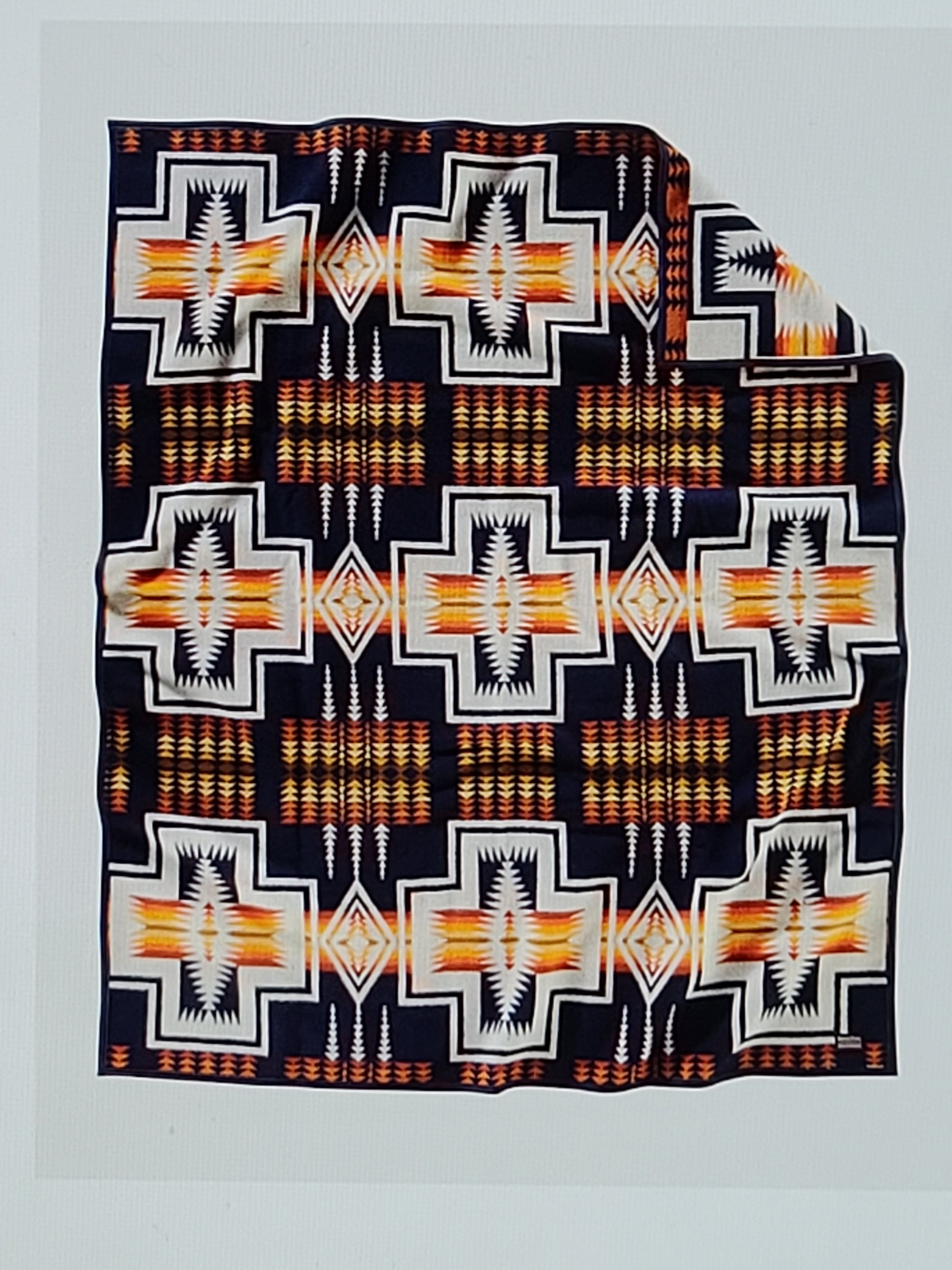 One of our most popular designs ever, crafted of USA-made wool in our Pendleton, Oregon mill. In 1923, President Warren Harding and his wife Florence came west to dedicate a portion of the old Oregon Trail. At the ceremony, local chiefs presented the first lady with a Pendleton shawl inspired by our famous Chief Joseph blanket. This dynamic design was an instant hit and remains in production today. "Absolutely gorgeous," says one customer. Pair with matching sham.