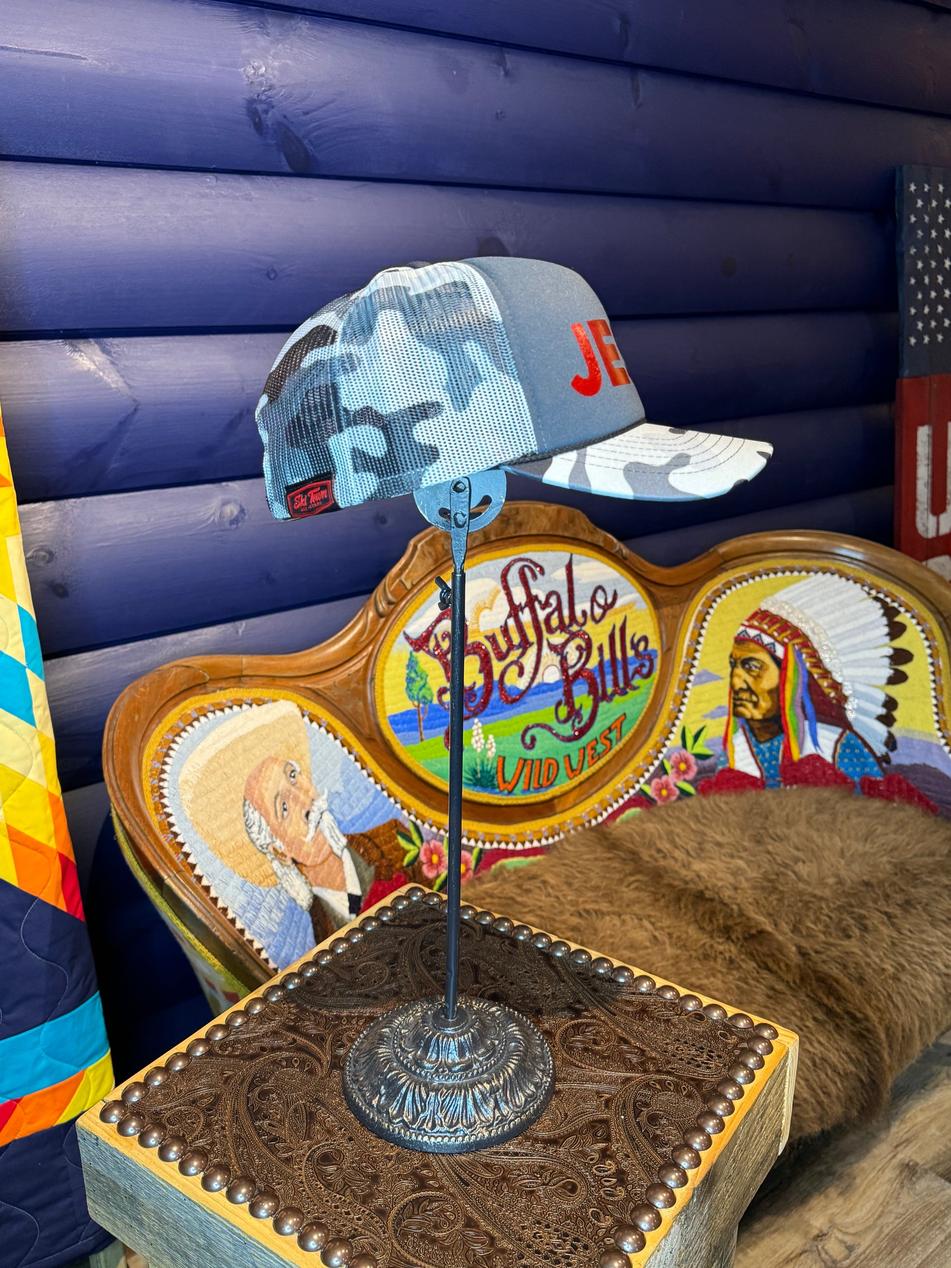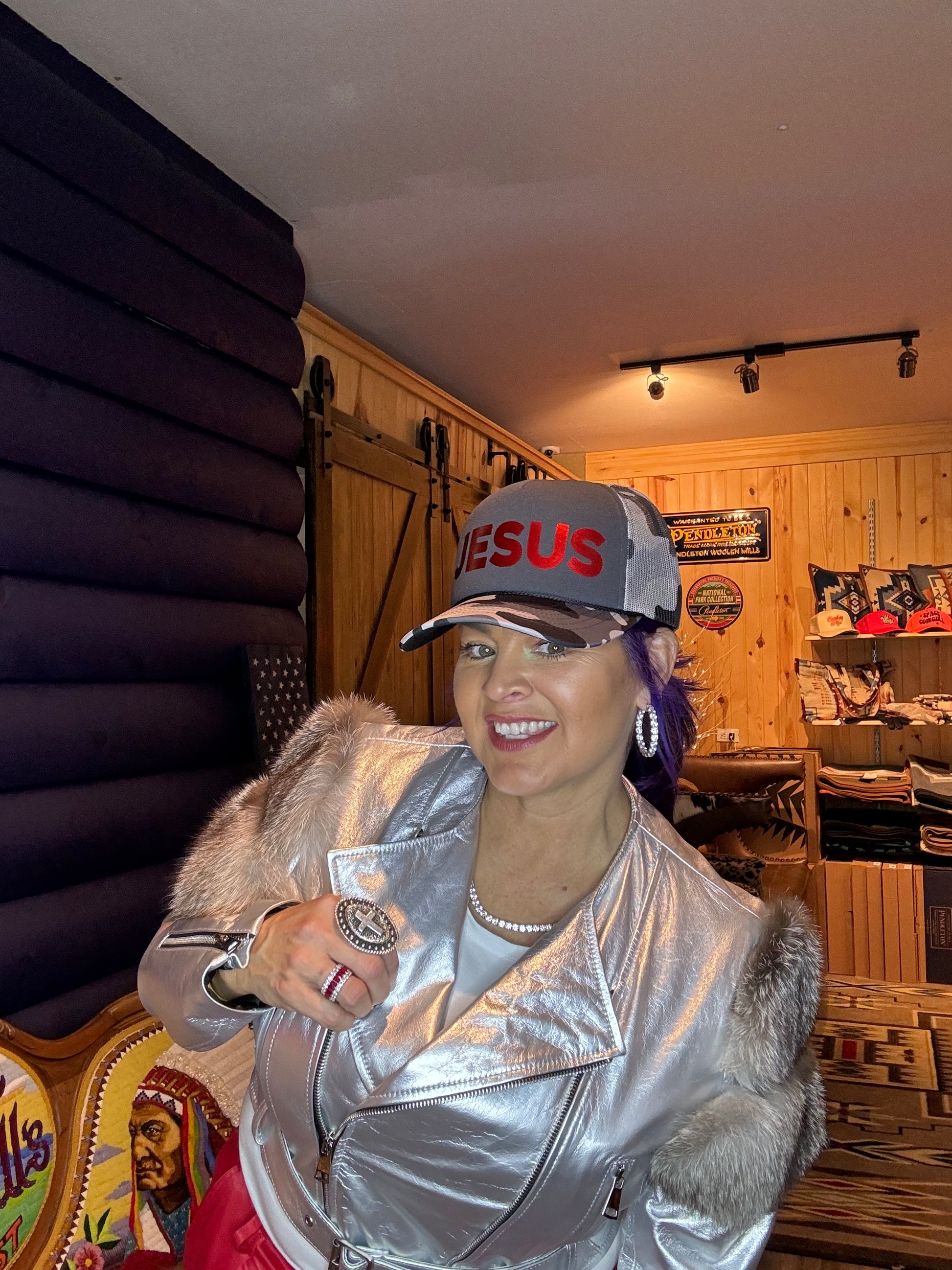JESUS White Snow Camo Trucker Cap w/Metallic Red