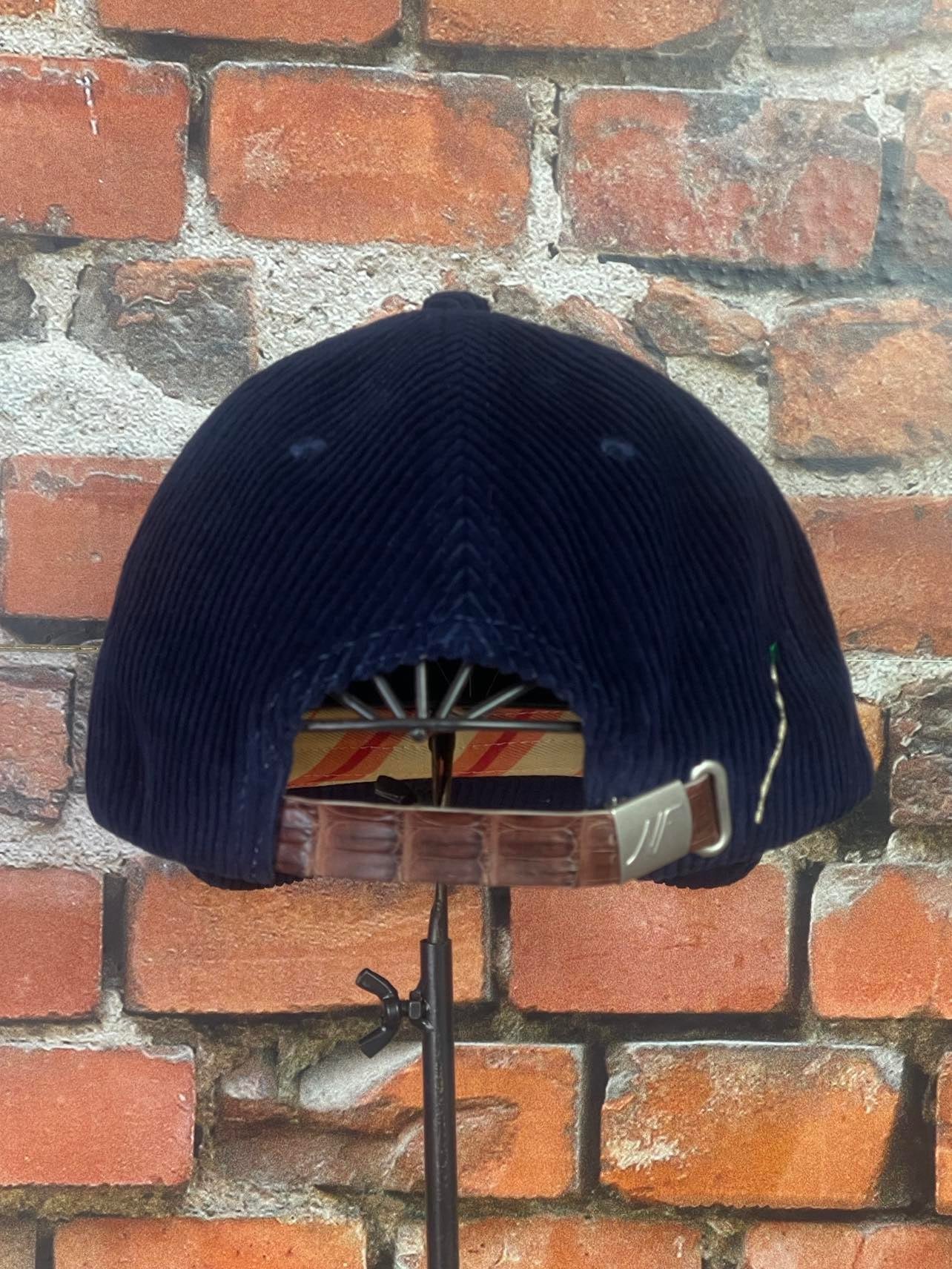 - Made in Venice Beach, California, the Double L Cap features their original logo in golden yellow embroidery and an exotic caiman adjustable pull strap on rich navy corduroy.