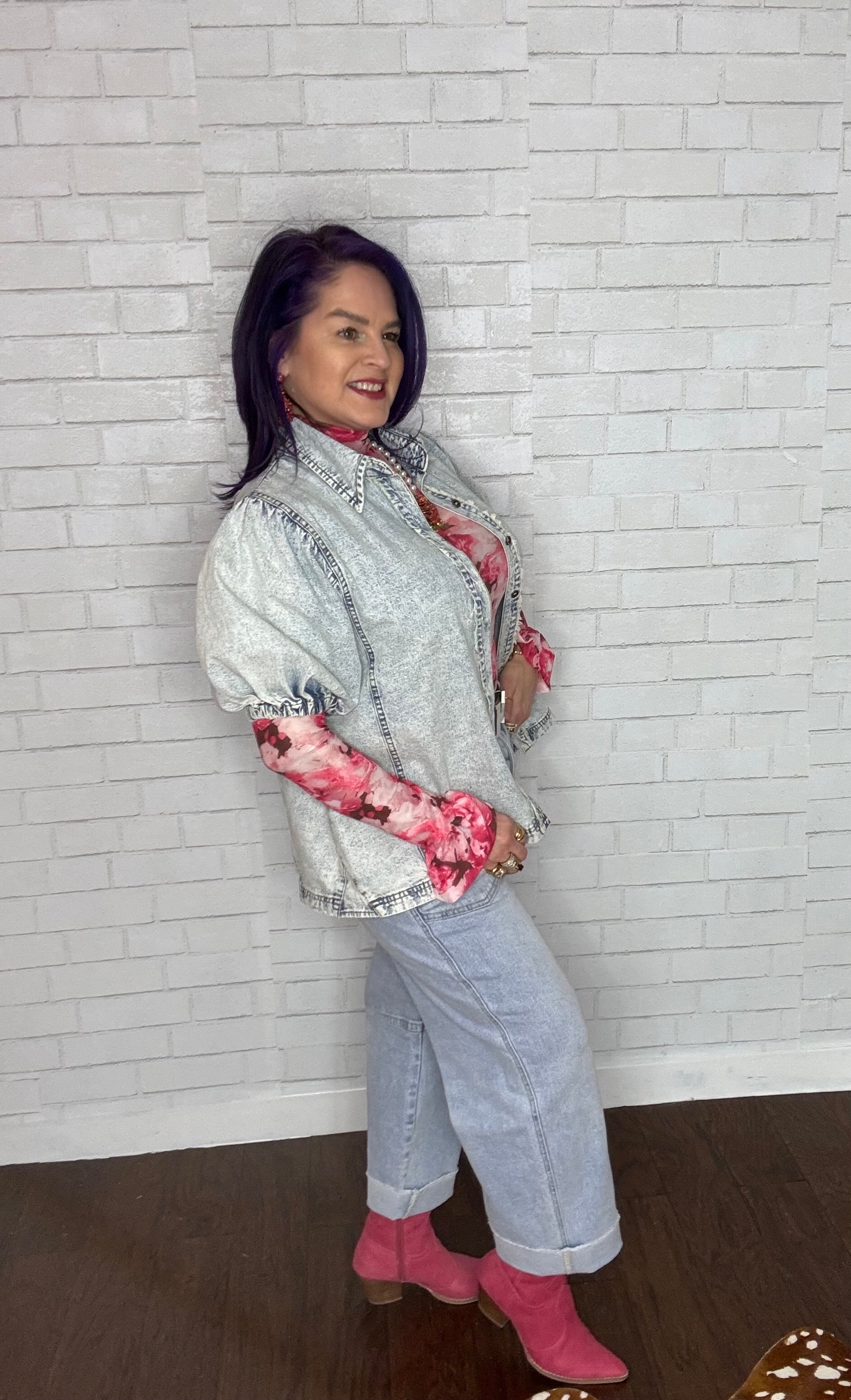 So pretty! Love the flounce sleeves and a chic mock neck. Perfect by itself or with a blazer.