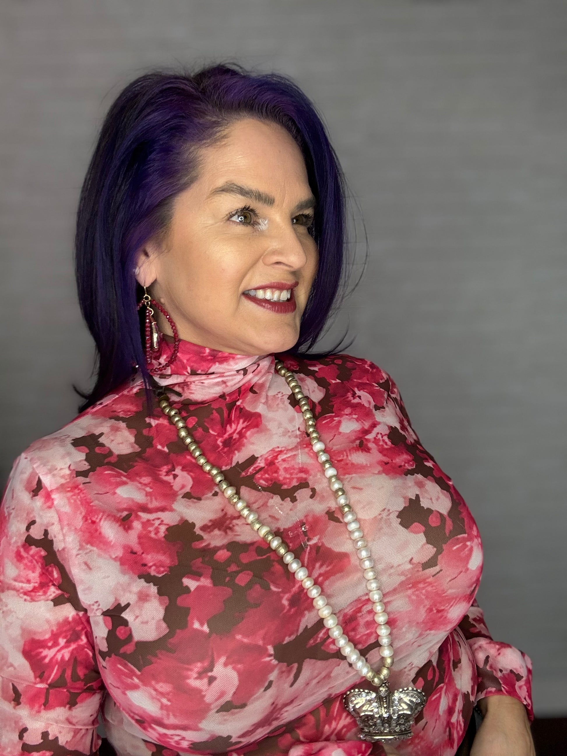 Pink Floral Mesh Top