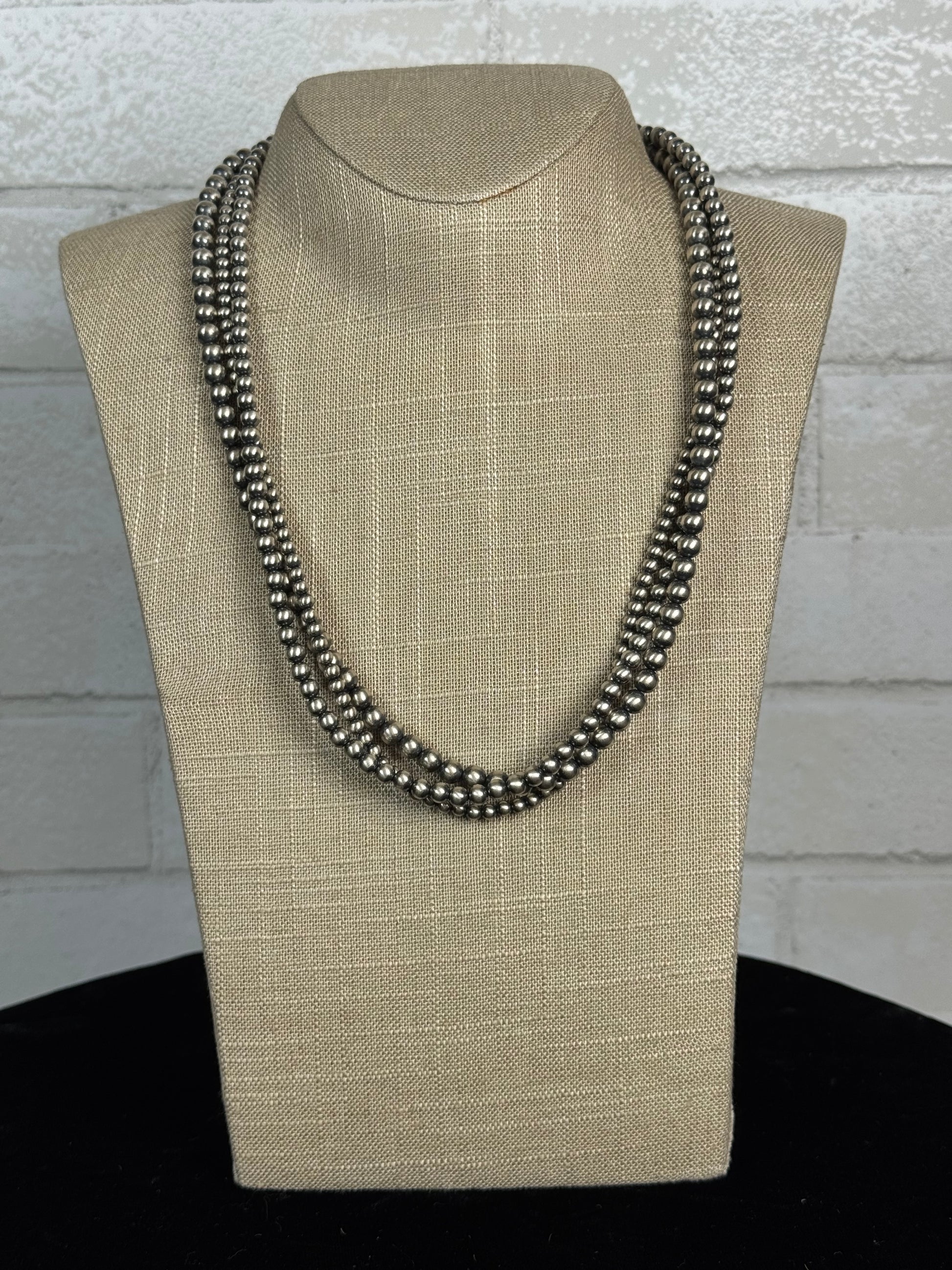 Three Strand Sterling Silver Navajo Pearls Necklace 22” Length
