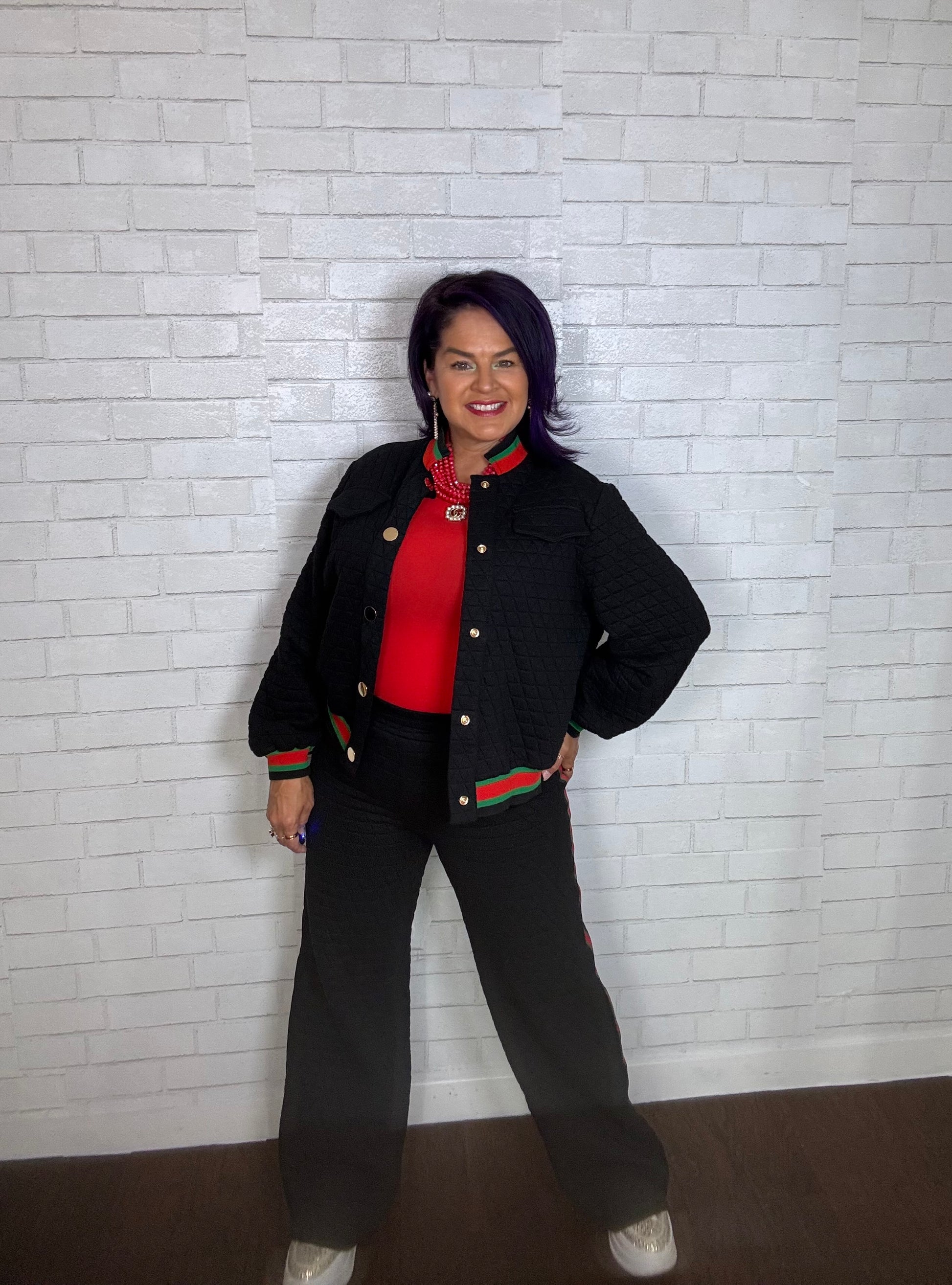 Fun leisure jacket to dress up or just be extra chic at the football, basketball game! Classy.