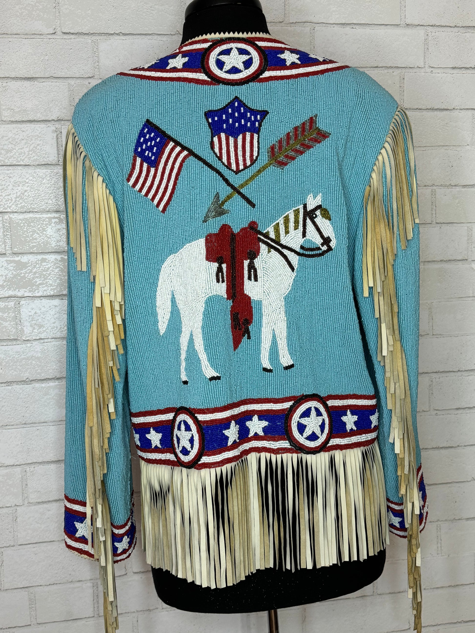 Vintage Rare Fully Beaded Hairston Roberson Jacket! I have had since maybe 2017/2018 was always a showstopper wherever I went. It has been a display in my store and always a topic of conversation when customers come in. It’s a treasure and just putting on website to see if there is a special collector out there. It’s an Heirloom museum piece for sure.